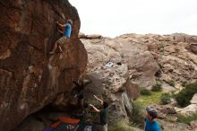 Blue Lizard Climbing and Yoga Hueco Tanks guiding on October 19, 2018 with Craig, Joe, and Devon