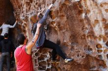 Blue Lizard Climbing and Yoga Hueco Tanks guiding on November 23, 2018, with Edsel & Haley, AJ & Valerie, Alex & Christina, Sean & Chelsey, Brett & Amanda