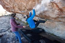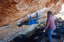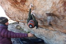 Blue Lizard Climbing and Yoga Hueco Tanks guiding on December 30, 2018, with Abby, Myles, Bill, Michelle, and Will