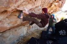 Blue Lizard Climbing and Yoga Hueco Tanks guiding on December 30, 2018, with Abby, Myles, Bill, Michelle, and Will