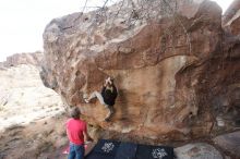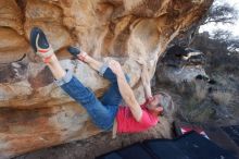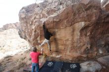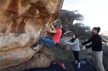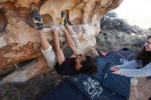 Blue Lizard Climbing and Yoga Hueco Tanks guiding on January 21, 2019, with Craig, Gisella, and Devon |