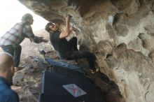 Blue Lizard Climbing and Yoga Hueco Tanks guiding on February 2, 2019, with Stephanie, Kelly, David, and Creedence |