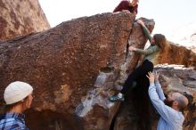 Blue Lizard Climbing and Yoga Hueco Tanks guiding on February 24, 2019, with Andrew & Lindsey; Joe; Kristina; Brad & Jana; Matt; Jason, Patty & Elise