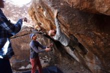 Blue Lizard Climbing and Yoga Hueco Tanks guiding on February 24, 2019, with Andrew & Lindsey; Joe; Kristina; Brad & Jana; Matt; Jason, Patty & Elise