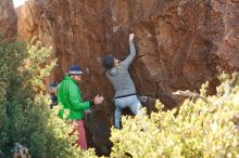Blue Lizard Climbing and Yoga Hueco Tanks guiding on February 24, 2019, with Andrew & Lindsey; Joe; Kristina; Brad & Jana; Matt; Jason, Patty & Elise