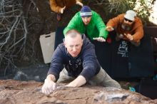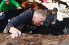 Blue Lizard Climbing and Yoga Hueco Tanks guiding on February 24, 2019, with Andrew & Lindsey; Joe; Kristina; Brad & Jana; Matt; Jason, Patty & Elise