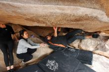 Blue Lizard Climbing and Yoga Hueco Tanks guiding on March 9, 2019, with Julian, Brian, Chris, Kady, Lois, David, and Abby