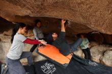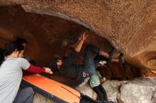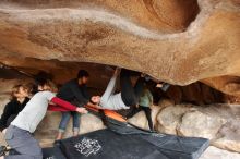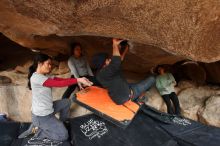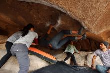 Blue Lizard Climbing and Yoga Hueco Tanks guiding on March 9, 2019, with Julian, Brian, Chris, Kady, Lois, David, and Abby