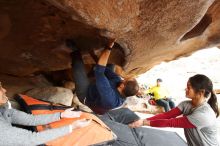 Blue Lizard Climbing and Yoga Hueco Tanks guiding on March 9, 2019, with Julian, Brian, Chris, Kady, Lois, David, and Abby