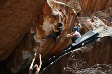 Blue Lizard Climbing and Yoga Hueco Tanks guiding on March 15, 2019, with Matt, Matt, David, and Danny