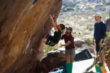 Blue Lizard Climbing and Yoga Hueco Tanks guiding on March 17, 2019, with Lance, Nick, Hudson,Mason, and Donna