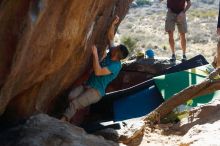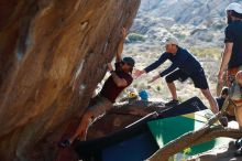 Blue Lizard Climbing and Yoga Hueco Tanks guiding on March 17, 2019, with Lance, Nick, Hudson,Mason, and Donna