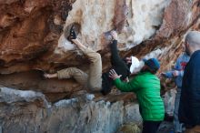 Blue Lizard Climbing and Yoga Hueco Tanks guiding on March 17, 2019, with Lance, Nick, Hudson,Mason, and Donna