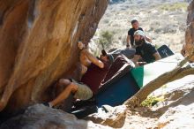 Blue Lizard Climbing and Yoga Hueco Tanks guiding on March 17, 2019, with Lance, Nick, Hudson,Mason, and Donna |