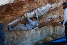 Blue Lizard Climbing and Yoga Hueco Tanks guiding on March 17, 2019, with Lance, Nick, Hudson,Mason, and Donna |