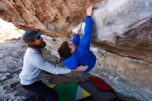 Blue Lizard Climbing and Yoga Hueco Tanks guiding on March 17, 2019, with Lance, Nick, Hudson,Mason, and Donna