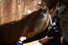 Blue Lizard Climbing and Yoga Hueco Tanks guiding on March 17, 2019, with Austin, MJ, Zak, Brian, and Lauren
