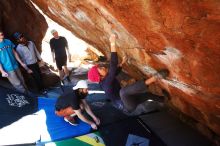 Blue Lizard Climbing and Yoga Hueco Tanks guiding on March 17, 2019, with Austin, MJ, Zak, Brian, and Lauren