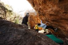 Blue Lizard Climbing and Yoga Hueco Tanks guiding on March 20, 2019, with Kevin and Leigh Ann