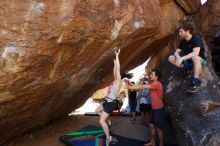 Blue Lizard Climbing and Yoga Hueco Tanks guiding on March 29, 2019, with Melanie, Sam, Jenny, and Spencer