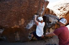 Blue Lizard Climbing and Yoga Hueco Tanks guiding on March 29, 2019, with Carolyn, Casey, and Cody