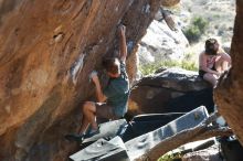 Blue Lizard Climbing and Yoga Hueco Tanks guiding on March 29, 2019, with Carolyn, Casey, and Cody