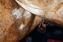 Blue Lizard Climbing and Yoga Hueco Tanks guiding on March 29, 2019, with Carolyn, Casey, and Cody