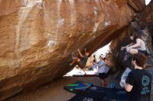Blue Lizard Climbing and Yoga Hueco Tanks guiding on March 29, 2019, with Carolyn, Casey, and Cody