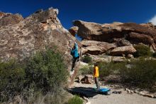 Blue Lizard Climbing and Yoga Hueco Tanks guiding on April 13, 2019, with Daniel and Kelly