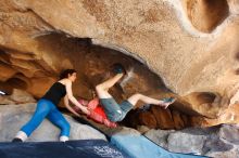 Blue Lizard Climbing and Yoga Hueco Tanks guiding on June 23, 2019, with Daniel and Carly