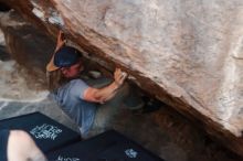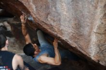 Blue Lizard Climbing and Yoga Hueco Tanks guiding on November 9, 2019, with Jason, Peter, Caleb, Chase, and Emily