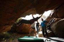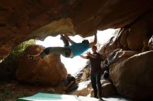 Blue Lizard Climbing and Yoga Hueco Tanks guiding on November 10, 2019, with Dom, Val, Caleb, Chase, and Emily |