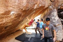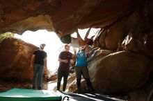 Blue Lizard Climbing and Yoga Hueco Tanks guiding on November 10, 2019, with Dom, Val, Caleb, Chase, and Emily |