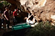 Blue Lizard Climbing and Yoga Hueco Tanks guiding on November 10, 2019, with Dom, Val, Caleb, Chase, and Emily