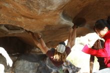 Blue Lizard Climbing and Yoga Hueco Tanks guiding on November 16, 2019, with with Cole, Amber, Sam, Aoi, and Tyler |