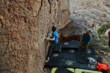 Blue Lizard Climbing and Yoga Hueco Tanks guiding on November 24, 2019, with Olivia, Meera, Nathan, Lily, and Jeremy