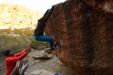 Blue Lizard Climbing and Yoga Hueco Tanks guiding on November 26, 2019, with Olivia, Meera, Nathan, Jeremy, and Nanda |