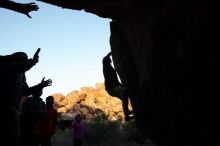 Blue Lizard Climbing and Yoga Hueco Tanks guiding on November 26, 2019, with Olivia, Meera, Nathan, Jeremy, and Nanda |