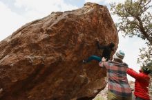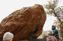 Blue Lizard Climbing and Yoga Hueco Tanks guiding on November 26, 2019, with Olivia, Meera, Nathan, Jeremy, and Nanda