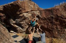 Blue Lizard Climbing and Yoga Hueco Tanks guiding on December 14, 2019, with Jesse, Mike, Rob, Chris, Miles, and An & Vy |