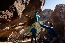 Blue Lizard Climbing and Yoga Hueco Tanks guiding on December 15, 2019, with Wes, Drew, Daniel, Andrew, Chris, and Amy