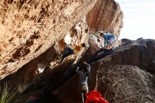 Blue Lizard Climbing and Yoga Hueco Tanks guiding on December 16, 2019, with Wes, Drew, Daniel, Andrew, Chris, and Amy