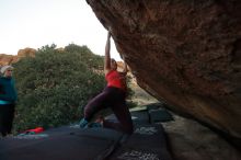 Blue Lizard Climbing and Yoga Hueco Tanks guiding on December 19, 2019, with Kenzie, Kat, Navish, Mariella, and Daniel