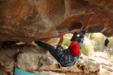 Blue Lizard Climbing and Yoga Hueco Tanks guiding on December 24, 2019, with Andrew & Kasey, Debbie & Max, Jeff, Tony, and Dom |