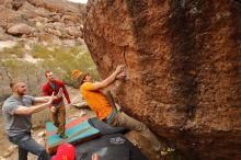 Blue Lizard Climbing and Yoga Hueco Tanks guiding on December 24, 2019, with Andrew & Kasey, Debbie & Max, Jeff, Tony, and Dom