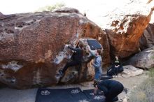 BLCY Hueco Tanks Guiding on January 26, 2020, with Kelsey, Alyssa, Sam, Emmit, and Emmanuel