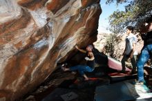 Blue Lizard Climbing and Yoga Hueco Tanks guiding on February 14, 2020, with Johannes, Karson, Mark, Rewon, Hank, and Mandy