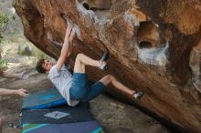 Blue Lizard Climbing and Yoga Hueco Tanks guiding on March 15, 2020, with Liam, Madison, Jack, and Stephen |