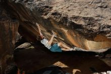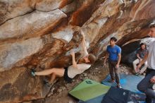 Blue Lizard Climbing and Yoga Hueco Tanks guiding on March 15, 2020, with Liam, Madison, Jack, and Stephen