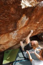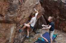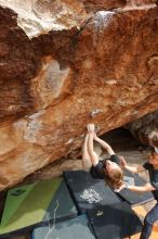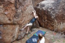 Blue Lizard Climbing and Yoga Hueco Tanks guiding on March 15, 2020, with Liam, Madison, Jack, and Stephen